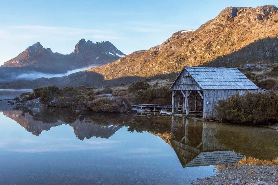 Sla zeker Dove Lake en het iconische boothuis niet over. Dit is letterlijk het hart en gezicht van Cradle Mountain. Ze vormen samen het meest gefotografeerde uitzicht van Tasmanië. En dat met een goede reden: het is een plek die de ruige schoonheid en de rust van dit gebied perfect samenvat. Het oude houten boothuis werd rond 1940 gebouwd door de rangers van de Cradle Mountain Reserve Board. Het diende ooit echt als boothuis: hier lagen de houten roeiboten waarmee parkbeheerders en bezoekers het meer opgingen. Vandaag de dag is het niet meer in gebruik, maar het staat er nog precies zoals toen: grijsverweerd hout, half op het strand, half in het water.