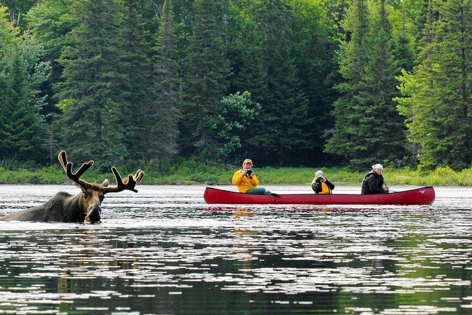 Een begeleide kanotocht over stille meren en smalle beekjes is de kern van je Algonquin-beleving. De gids helpt met peddeltechniek en wijst beverdammen en oeverplekken waar elanden graag komen. Met windstille omstandigheden ligt het bos als een spiegel in het water en hoor je alleen de roep van de bijzonder fraaie vogel; de ijsduiker.