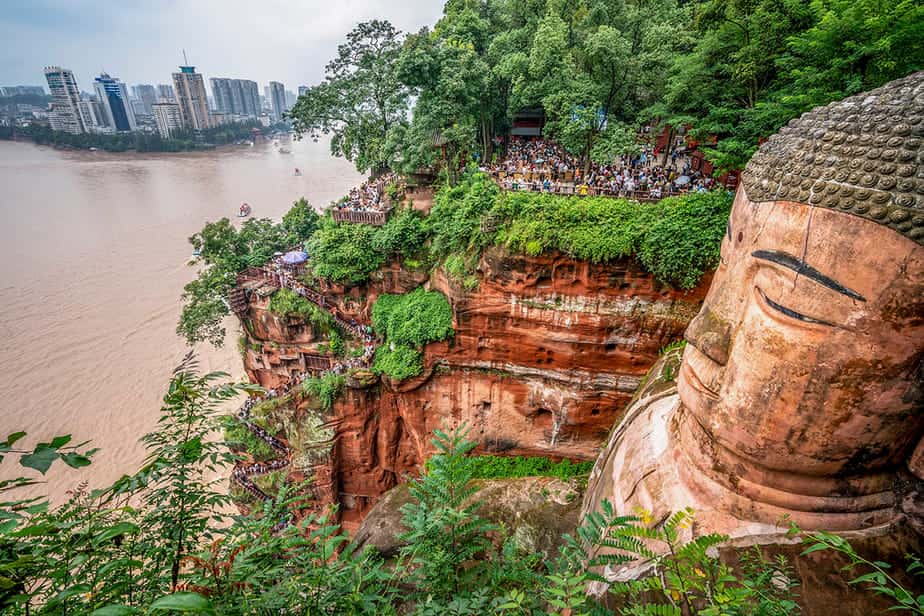 De Grote Boeddha van Leshan torent met 71 meter hoog boven je uit. Het immense beeld is uitgehouwen in de rotsen buiten de stad. Het bijzondere is dat je om hem heen kunt lopen, zodat je een goed beeld krijgt van dit meesterwerk. Ook vanaf het water heb je een bijzonder beeld op dit beeld.