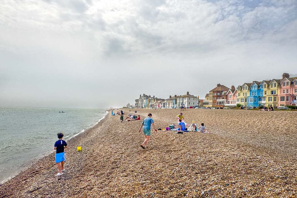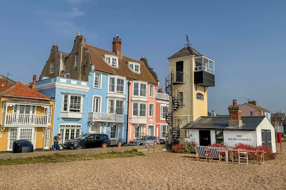 Als je door het dorp wandelt, kom je vanzelf het strand tegen. Het is een lang, fotogeniek kiezelstrand waar kleurrijke vissersbootjes nog steeds vers gevangen vis aanbieden. Maar als je aan komt lopen denk je dat het strand leeg is. Totdat je over de kleine heuvel van kiezels loopt en ziet dat mensen aan de waterkant zitten. In de winkeltjes bij het strand, en op de hoofdstraat, kun je voor een paar Engelse pond speciale schoentjes kopen. Hiermee kun je makkelijker over de kiezels lopen om te gaan zwemmen bijvoorbeeld. Langs de kust vind je veel mooie historische houten huizen, die nu vaak worden verhuurd als cottage. Je kunt helemaal noordwaarts richting het gehucht Thorpeness lopen. Hoe verder je gaat, hoe rustiger het wordt.