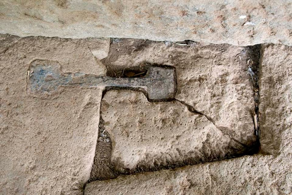 Onder de deur is een graf en een schatkamer gevonden. Althans, nadat grafrovers hun slag hadden geslagen. Nog steeds kun je in deze kamers kijken. En zie je onder meer een stenen tombe, waarop waarschijnlijk het lichaam van de koning lag. Daarnaast ligt een grote schatkamer, die grotendeels leeg was. Let op de ijzeren pinnen die de immense stenen bij elkaar moesten houden. Neem een zaklamp mee om deze graven goed te kunnen verkennen.