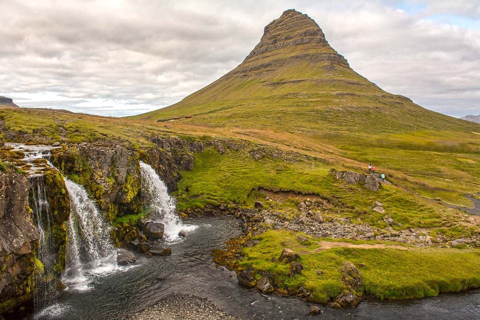 De berg die scherp afsteekt tegen de omliggende fjorden en valleien, met twee watervallen die het beeld compleet maken. Dat is Kirkjufell, dat betekent letterlijk Kerkberg in het IJslands. Met een hoogte van 463 meter lijkt het meer op een heuvel dan op een berg. Toch maakt de unieke kegelvorm Kirkjufell onmiskenbaar. Deze attractie ligt langs de weg 54 op het schiereiland Snæfellsnes.