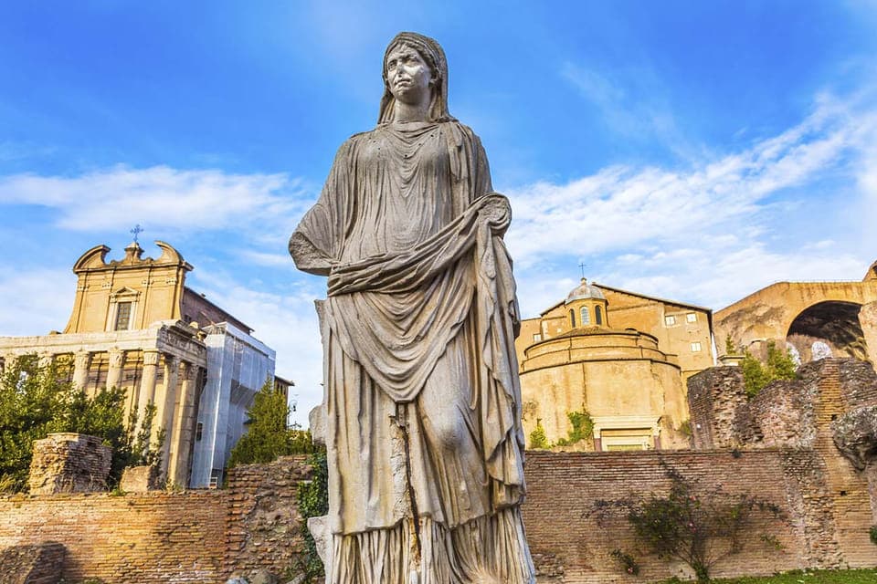 Direct naast de Tempel van Vesta vind je het Huis van de Vestaalse Maagden, de woning van de priesteressen die verantwoordelijk waren voor het heilige vuur. Het complex bestond uit elegante binnenplaatsen, tuinen en talloze kamers. Resten van beelden en inscripties zijn nog zichtbaar. Dit geeft een zeldzaam inkijkje in het religieuze leven van vrouwen in de Romeinse tijd.