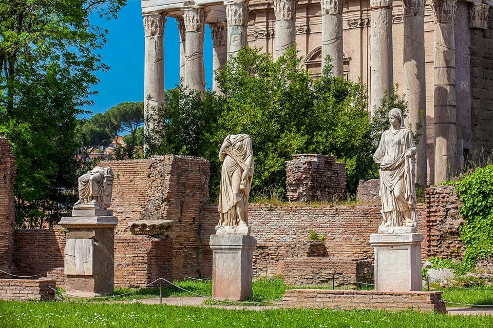 Deze tempel werd in de 2e eeuw n.Chr. gebouwd en gewijd aan keizerin Faustina. Na haar dood werd de tempel hernoemd ter ere van Antoninus Pius. Tegenwoordig zijn de monumentale zuilen prachtig geïntegreerd in een later gebouw, waardoor je goed de lagen van de geschiedenis kunt zien.