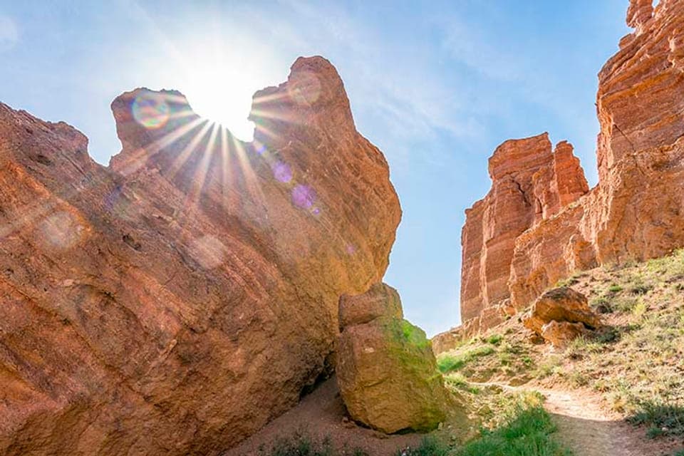De Charyn Canyon ligt in het zuiden van Kazachstan. Door erosie van de Scharyn-rivier is de kloof ontstaan. Hij is maar liefst 154 kilometer lang. De stenen hebben hier diverse kleuren als geel, rood bijvoorbeeld. Je kunt hier wildwatervaren en kanoën. Er is ook een gedeelte met een zandweg door de kloof.