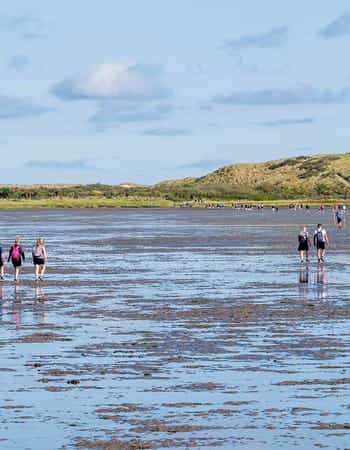 Wandelen door het ruige deel van het eiland. Waar je veel zicht hebt op de Waddenzee. En op de oesterbank. Het startpunt van deze donkerblauwe route is op de Postweg.