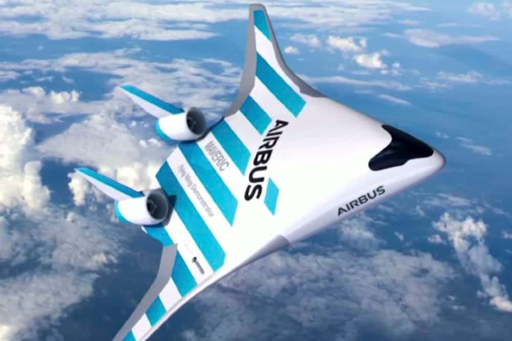 Maar ook sneller. En het ziet er heel anders uit dan de huidige vliegtuigen. Een conceptmodel van twee meter ging op een afgelegen locatie Frankrijk de lucht in. De vleugels van het vliegtuig zijn geïntegreerd met de romp.