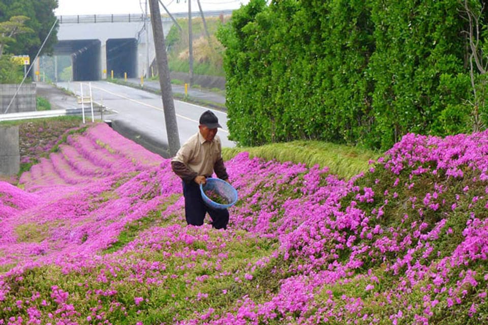 Inmiddels komen honderden toeristen kijken naar de bloemen als ze in bloei staan tussen maart en mei. Ze zien het stel dan vaak op een bankje zitten met een glimlach.