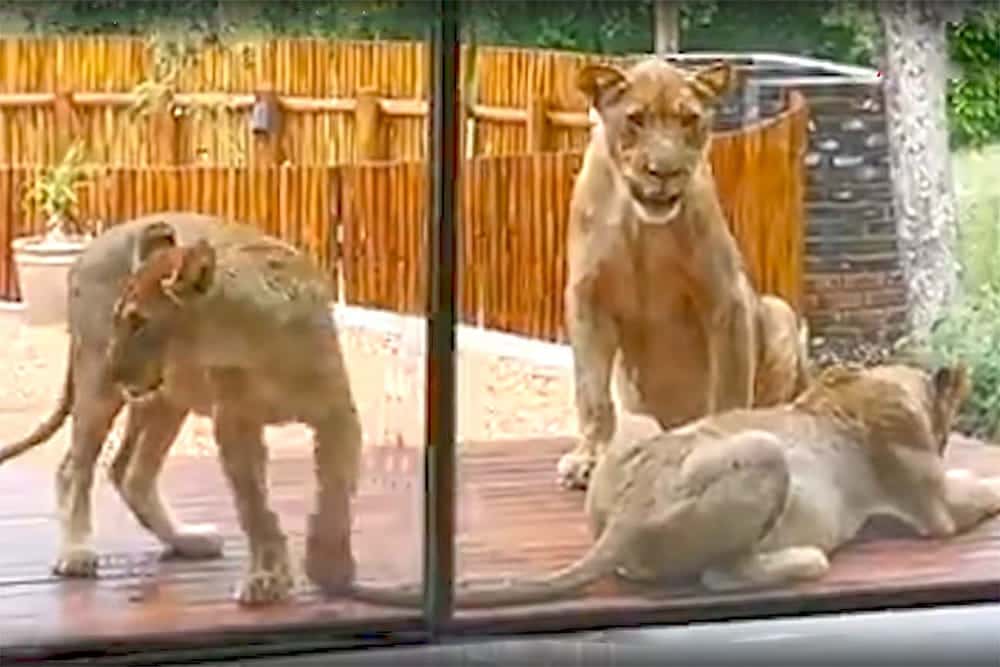 Het gebeurde bij het huis in een buitenwijk van Hoedspruit. Rondom de huizen wordt een groot natuurpark aangelegd; Het Leadwood Big Game Estate. Waar dus onder meer deze zes leeuwinnen leven.
