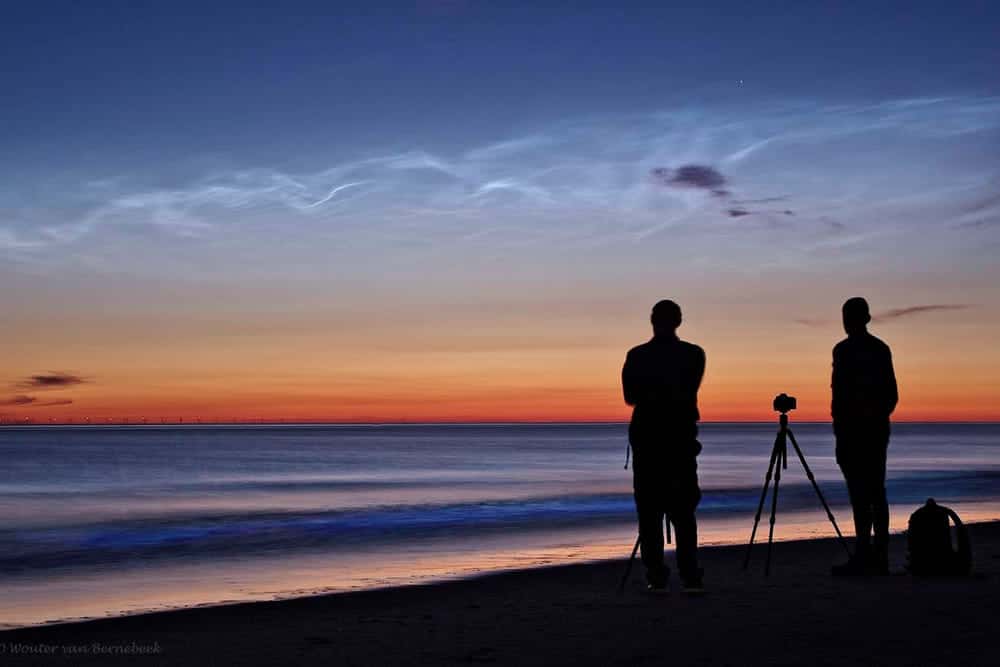 Al dagen werd voorspeld dat het in het midden van de nacht nachtwolken in de lucht zou kunnen geven. Lichtende nachtwolken komen alleen voor in mei, juni en juli voor. Het zijn wolken die licht reflecteren van de zon die net onder de horizon staat. Volgen geleerden drijven de wolken op zo’n 80 kilometer hoogte dan wolken. Wat veel hoger is dan normale wolken. Op die plek is het min 100 graden Celsius of kouder. Als de omstandigheden ideaal ontstaan er ijsdeeltjes op de aldaar rondvliegende stof- en gruisdeeltjes. Die weerkaatsen dan het licht. En dat is dus wat je ziet aan de horizon. En dan zo midden in de nacht, of bijvoorbeeld drie uur. Als het normaal pikdonker is.