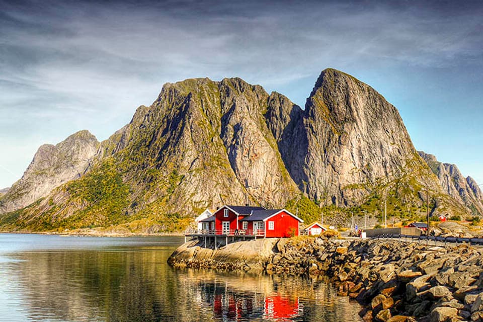 De rode huizen aan de kust van de Lofoten zijn wereldberoemd. Deze zogeheten Rorbuer (zoals ze in het Noors heten) zijn traditionele vissershutten aan het water. Ze zijn aangepast aan de moderne tijd. Ze hebben bijvoorbeeld een goed bed, verwarming, keuken met fornuis en koelkast, tv en meestal ook wifi.