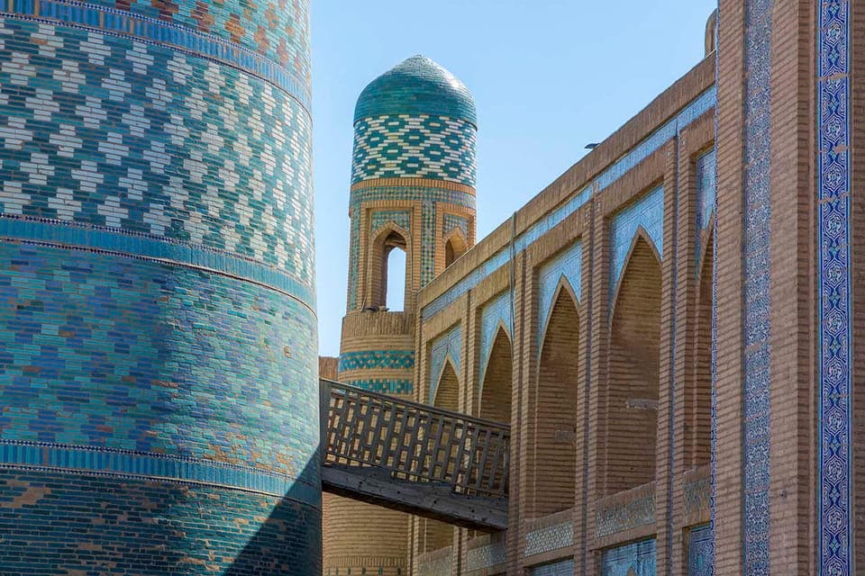Deze madrassa is de grootste van Khiva en werd gebouwd in de 19e eeuw. Tegenwoordig is het een hotel en museum, maar de historische architectuur is nog volledig intact. De details en patronen van de tegels geven een goed beeld van de rijkdom die Khiva ooit kende.
