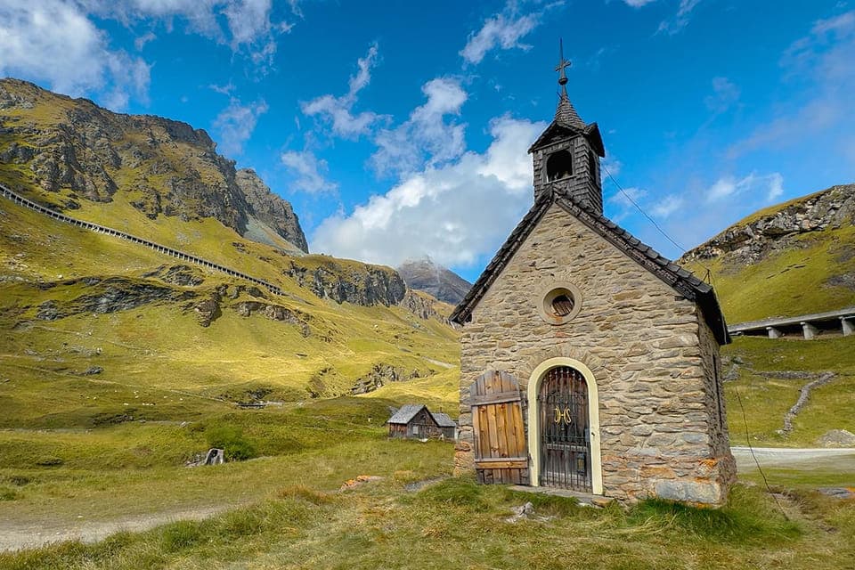 Bij het Pasterzenhaus ligt een opvallend kleine kapel in een ongekend fraai landschap. Je kunt hier de auto parkeren en naar de kapel lopen, waarbij je de fraaiste uitzichten hebt. In de verte is de weg zichtbaar, die als een slang over de berg kronkelt. Er gaat een wandelroute naar het iets verderop gelegen meer, waar je een kleine waterval kunt zien. Je ziet de kapel links van de weg liggen als je omhoog rijdt. Ik heb hem op de terugweg bezocht, er was niemand.