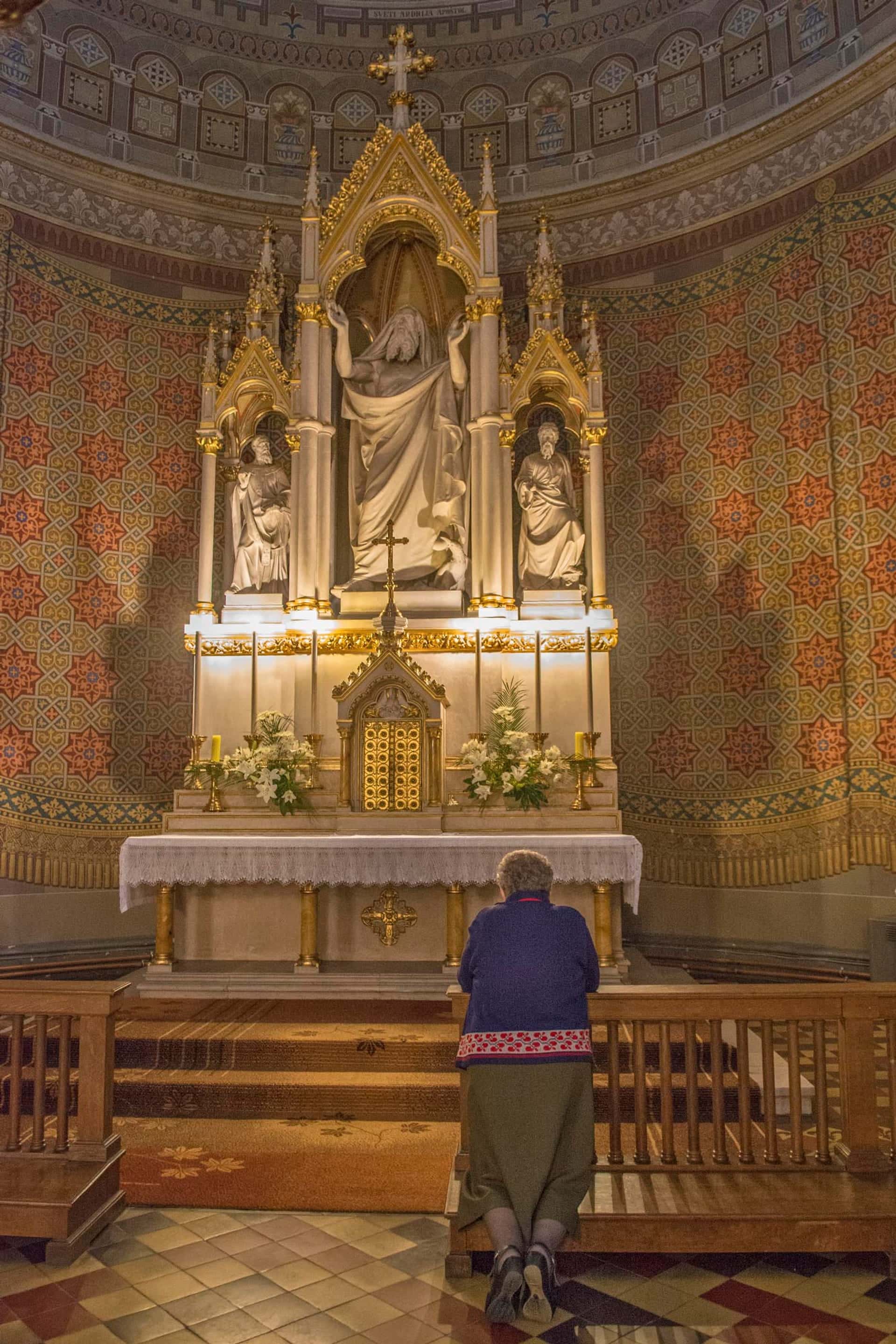 Ik zie de immense Kathedraal bij het plein. En ga naar binnen. Een oase van rust. Twee vrouwen praten wat; een sereen beeld.