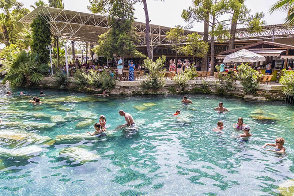 Een van de hoogtepunten van Pamukkale is een duik in dit historische thermaalbad, gevuld met warme, mineraalrijke bronnen.