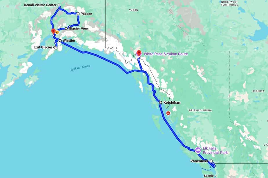 Ik heb deze reis gemaakt, maar er zijn meerdere routes mogelijk. Als je wilt kun je ook alleen een reis met een huurauto maken of alleen een cruise van meerdere dagen doen. Wil jij Alaska op jouw manier bezoeken? Ik geef je gratis een compleet reisadvies op maat. Vul dit formulier op Droomplekken.nl in en ik help je met het regelen van jouw perfecte reis.