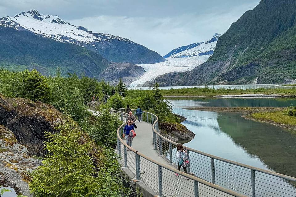 Juneau is vooral ook de plek om de indrukwekkende Mendenhall-Gletsjer te bezoeken. Deze gletsjer wordt omgeven door wandelpaden en watervallen. Er is een Mendenhall Glacier Visitor Center waar je informatie kunt krijgen over alle routes, de dieren die er leven en hoe de gletsjer in volume is afgenomen in de laatste decennia. In de middag ga ik op een walvissafari, om bultruggen en andere zeedieren van dichtbij te zien. Het is een van de vele excursies die je in Juneau en omgeving kunt maken.