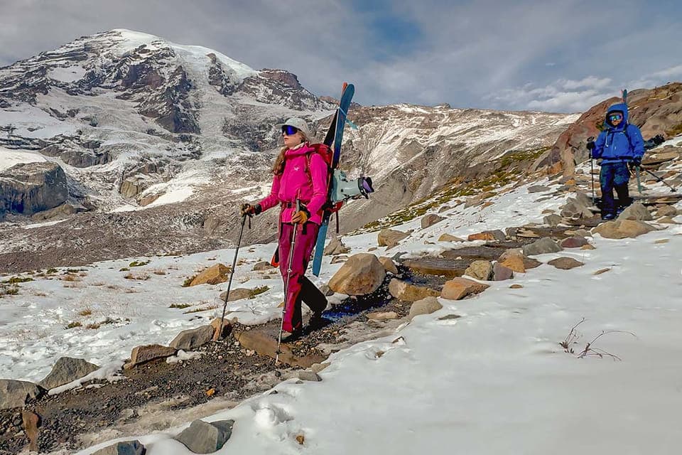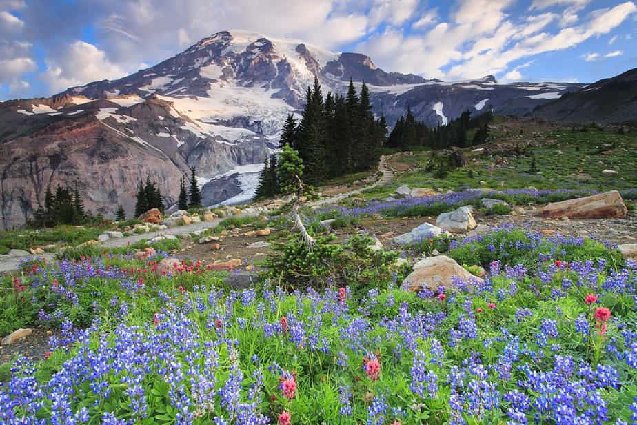 De beste periode om Mount Rainier te bezoeken is van juli tot september. Dan zijn de meeste wegen open, de sneeuw gesmolten en de bloemen op hun mooist. In juni kan er nog sneeuw liggen op hogere paden, en in oktober kan het weer al winters worden. Ik ben bij Mount Rainier in oktober geweest en liep al in de sneeuw, terwijl ik ook nog genoeg groen zag.