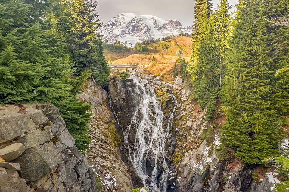 Mount Rainier is beroemd om zijn vele watervallen, gevoed door het smeltwater van meer dan 25 gletsjers. Sommige liggen binnen 5 minuten lopen, anderen zijn alleen na uren wandelen bereikbaar.