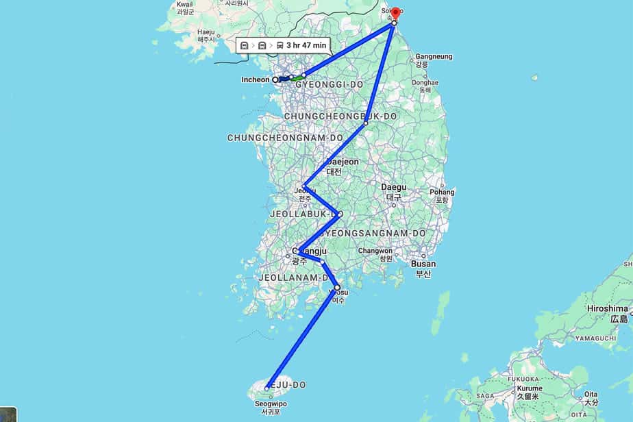 LET OP: Dit is slechts een voorbeeldreis die ikzelf heb gemaakt. Er zijn meerdere korte en langere routes door dit magische land mogelijk. Wil jij Zuid-Korea op de juiste manier bezoeken? Ik geef je gratis een reisadvies op maat. Vul dit formulier in en ik help je met het regelen van jouw perfecte reis.