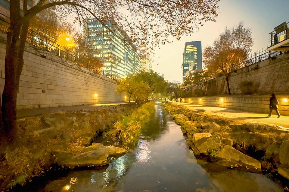 De Cheonggyecheon-stream is een 11 kilometer lange stadsbeek die door het centrum slingert. Ik liep er na zonsondergang, toen de lampen onder de bruggen het water verlichtten, en het voelde alsof je door een geheime groene gang in het hart van Seoul loopt. Het is een heerlijke plek om te ontspannen na een volle dag sightseeing.