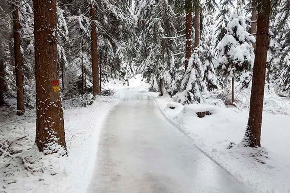 Het bos bij Albula is al jaren een favoriete plek voor schaatsers. Als het begint te vriezen wordt een bospad met een speciale wagen voorzien van een laagje water. Dat binnen een nacht bevriest. Waarna het ijs door een machine wordt geschaafd en gepolijst. Waarna jij er op mag…