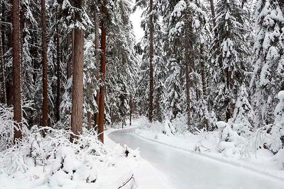De Skateline Albula is in de winter een 3 km lange schaatsbaan door een bos