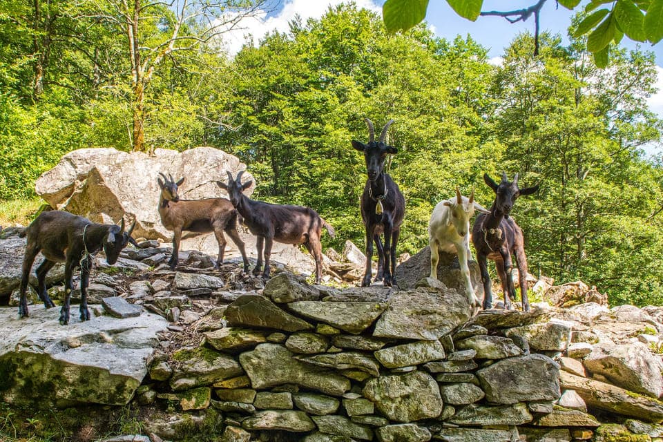 De Nera Verzasca-geiten komen alleen in deze vallei voor. Ze zijn opvallend zwart van kleur en kun je op talloze plekken zien. Je hoeft alleen maar te luisteren naar hun ‘meh’, dat door de vallei schalt.